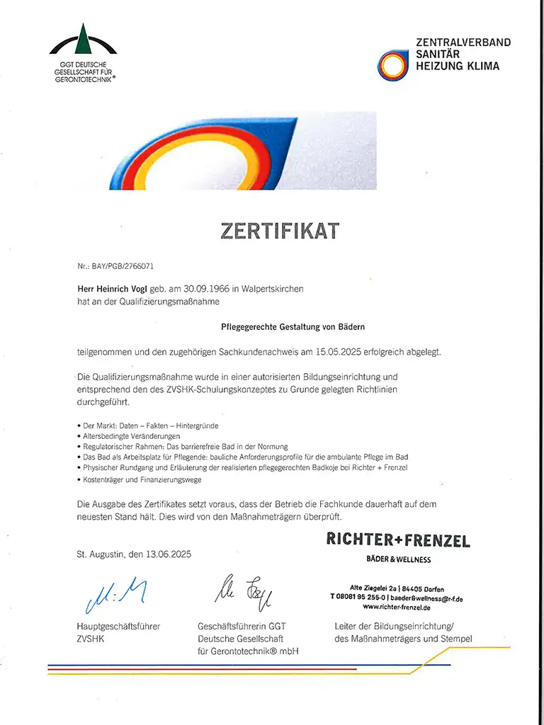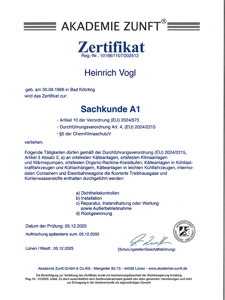 Mein Name ist Heinrich Vogl. Seit fast 40 Jahren arbeite ich in der Praxis – mit Erfahrung aus Handwerk, Planung und Objektbetreuung. Als geprüfter Sachverständiger – Gutachter Heizung, Gutachter Sanitär und Gutachter Klimatechnik – bewerte ich technische Anlagen fachlich präzise, nachvollziehbar und neutral.